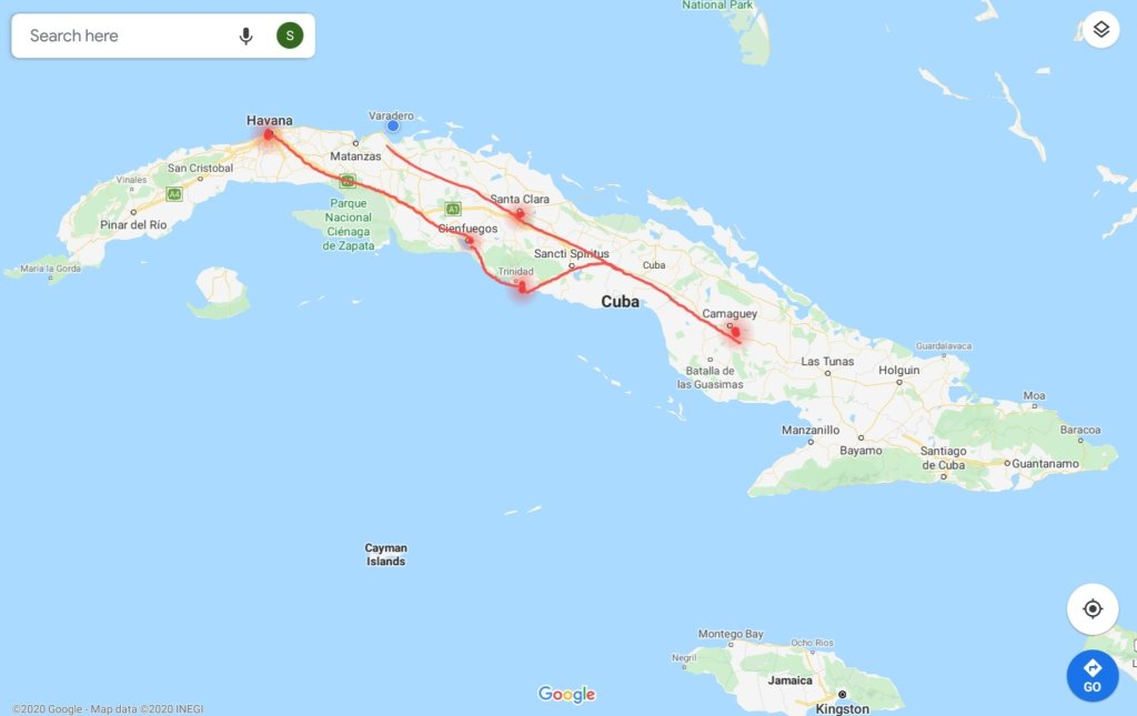 Von dort geht es nach Camaguey, was eine besonders kulturelle Stadt mit buntem Nachtleben sein soll. Danach führt der Weg über die koloniale Hafenstadt Trinidad in die ebenfalls historische Hafentstadt Cienfuegos.