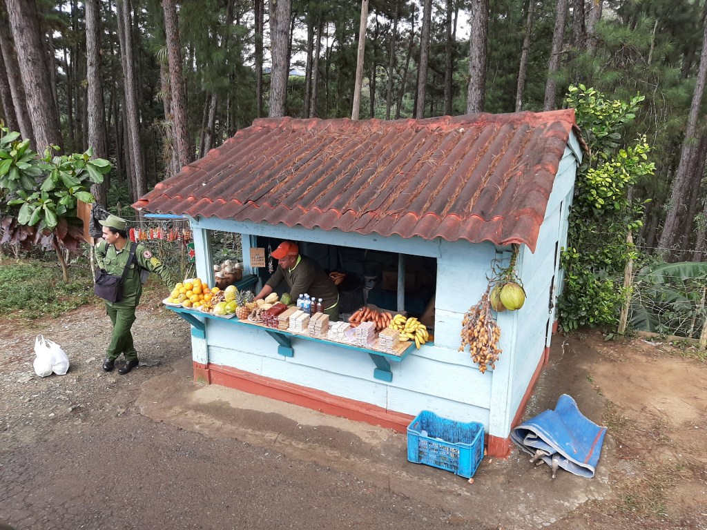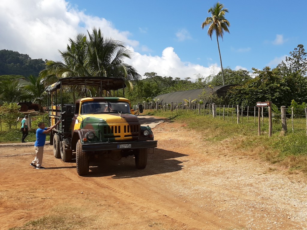 Auf knapp 800 m machen wir einen Zischenstopp und erfahren die ersten Fakten über die Herstellung von Kaffee. Der wird überall anders schlecht gemacht. Nur auf Kuba wird es richtig gemacht. Deshalb ist der auch so Teuer! Wie praktisch, dass neben den überresten einer alten Kaffeemanufaktur gleich das Case del Cafe steht, in dem man den Kaffee gleich mal probieren kann – für nur 3 CUC (3 Euro).