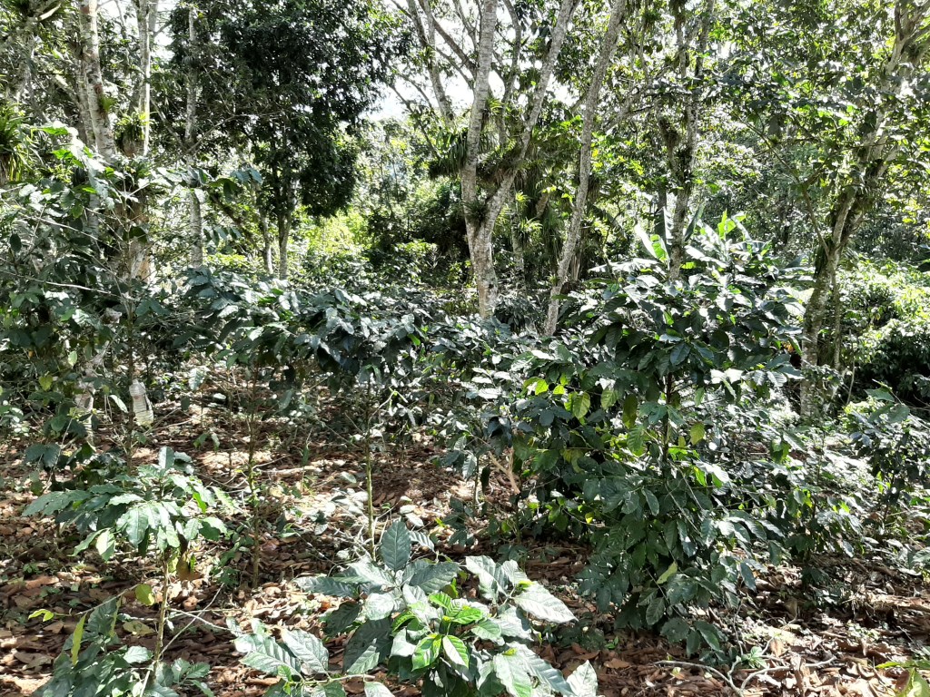 Kaffeebäume zwischen schatten spendenden Bananenbäumen.