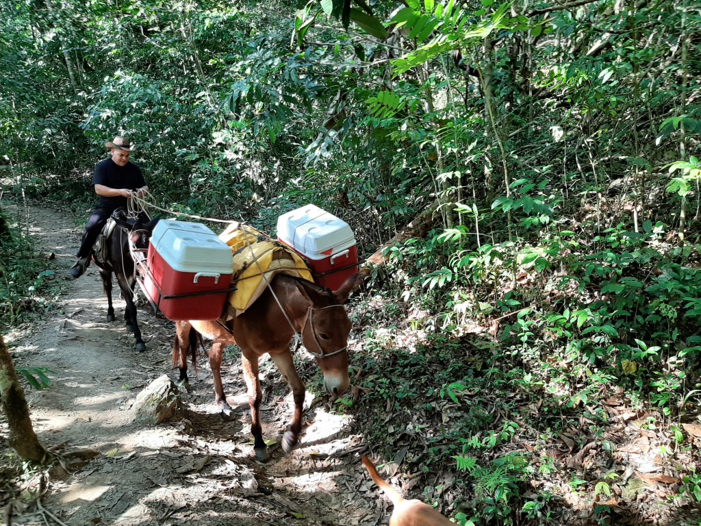 Da wir die letzte Gruppe des Tages waren schloß der Stand direkt nach uns und wir wurden auf dem engen Pfad von ihm und seiner Ware überholt.