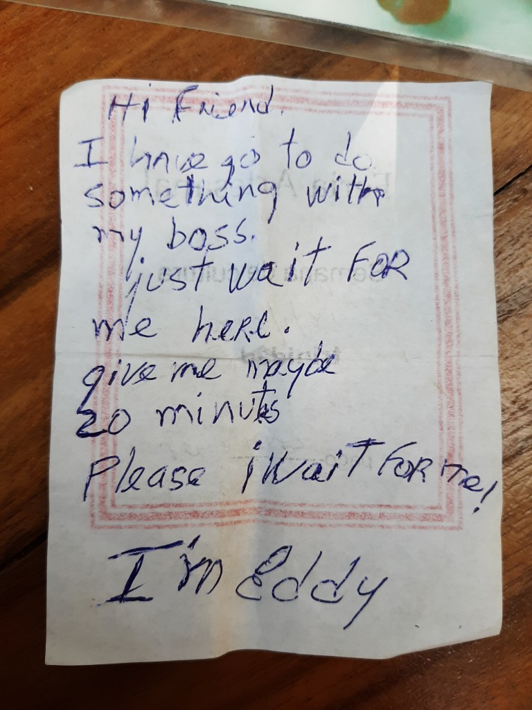 Am nächsten Tag soll ich ihn auf seiner Arbeit treffen. Da am Abend doch schon viel Alkohol geflossen ist, ist es gar nicht so leicht die Straße wiederzufinden. Dort angekommen stellt sich heraus, dass er nicht dort ist wo er sein sollte. In diesem Falle, so sagte er mir am Vortag soll ich einfach nach ihm fragen, da ihn alle in der Gegend kennen würden. Das klang alles ziemlich einleuchtend mit viel Rum im Kopf. Aber nüchtern, leicht verkatert bei 30 Grad, in einer heißen Seitenstraße stehend, wird mir wieder einmal meine Unfähigkeit bewusst mich in diesem Land auszudrücken. Ich suche also die erstbeste Person und frage sie in wirklich schlechtem spanisch ob sie wohl Eddy kenne. Sie antwortet auf spansich und weil sie wohl vorgewarnt wurde gibt sie mir einen Zettel.