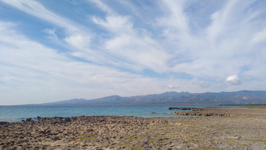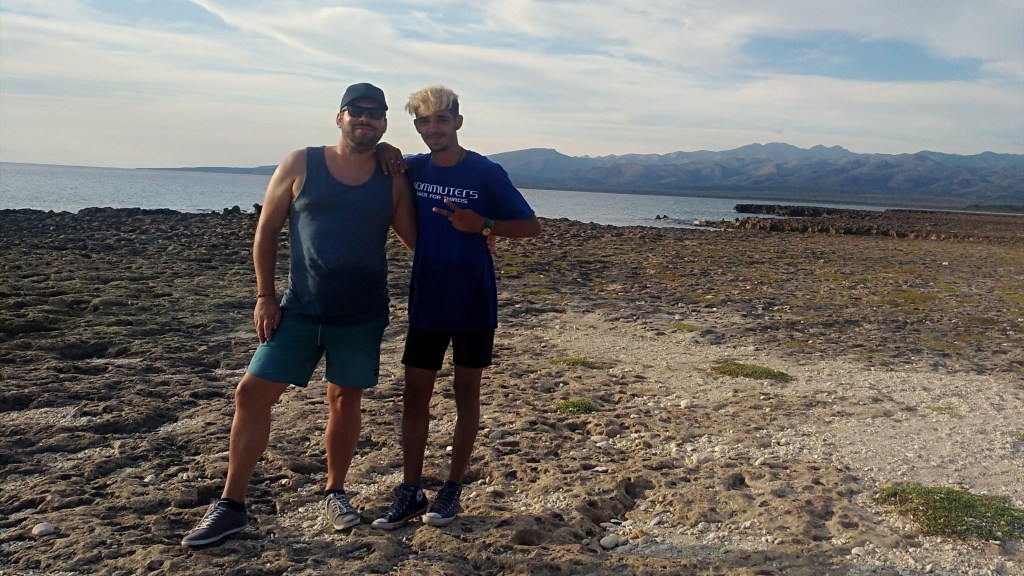 Das erste Mal Schnorcheln findet für mich an einer steinigen Bucht mit ordentlich Wellengang statt. Nach einiger Eingewöhnung jedoch ist es super und wir ziehen über La Boca, den Strand der Einheimischen, weiter zu einem beliebten Schnorchelgebiet. Dort ist auf den Boden des glasklaren Wassers mit Steinen der Name Trinidad gelegt worden. Mit einem zufällig gefundenen Angelhaken und schnell zerschlagenen Muscheln angelt mein neuer Freund noch drei Fische fürs Abendbrot. Dann ist es Zeit den Rückweg anzutreten.