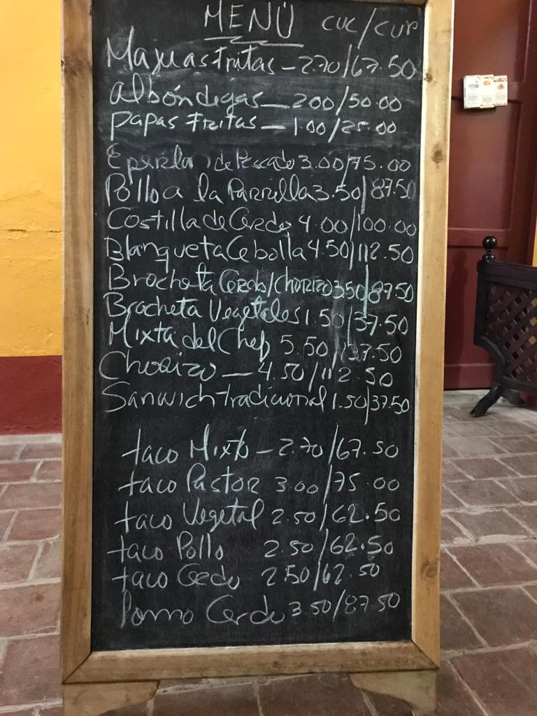 So saßen wir in Cerverceria und dank Catrinas rudimentären Spanischkenntnissen suchten wir uns was zu essen aus der überall aufgestellten Speisekarte aus. Als der Kellner kam, lächelte er, nahm unsere Bestellung auf, ging davon und kam nach 5 Minuten wieder um uns mitzuteilen, dass es heute leider nichts von der Speisekarte gibt. Heute gäbe es lediglich Pommes, Hamburger und Sandwiches. Also bestellten wir fix 3 Hamburger mit Pommes. Der Kellner lächelte, nahm unsere Bestellung auf, ging davon und kam nach 5 Minuten wieder. Es tue ihm leid, doch Hamburger würde es heute doch nicht geben. Heute gäbe es lediglich Pizza. Dafür aber in drei Varianten. Käse, Käse-Schinken und Thunfisch. Als wir von jeder eine bestellen wollen, zögert er kurz und erbat sich einen Moment um dieses mal direkt in der Küche nachzufragen ob es wirklich heute Thunfisch gäbe. Gab es wirklich sagte er, als er mit den zuvor bestellten Pommes wieder kommt.