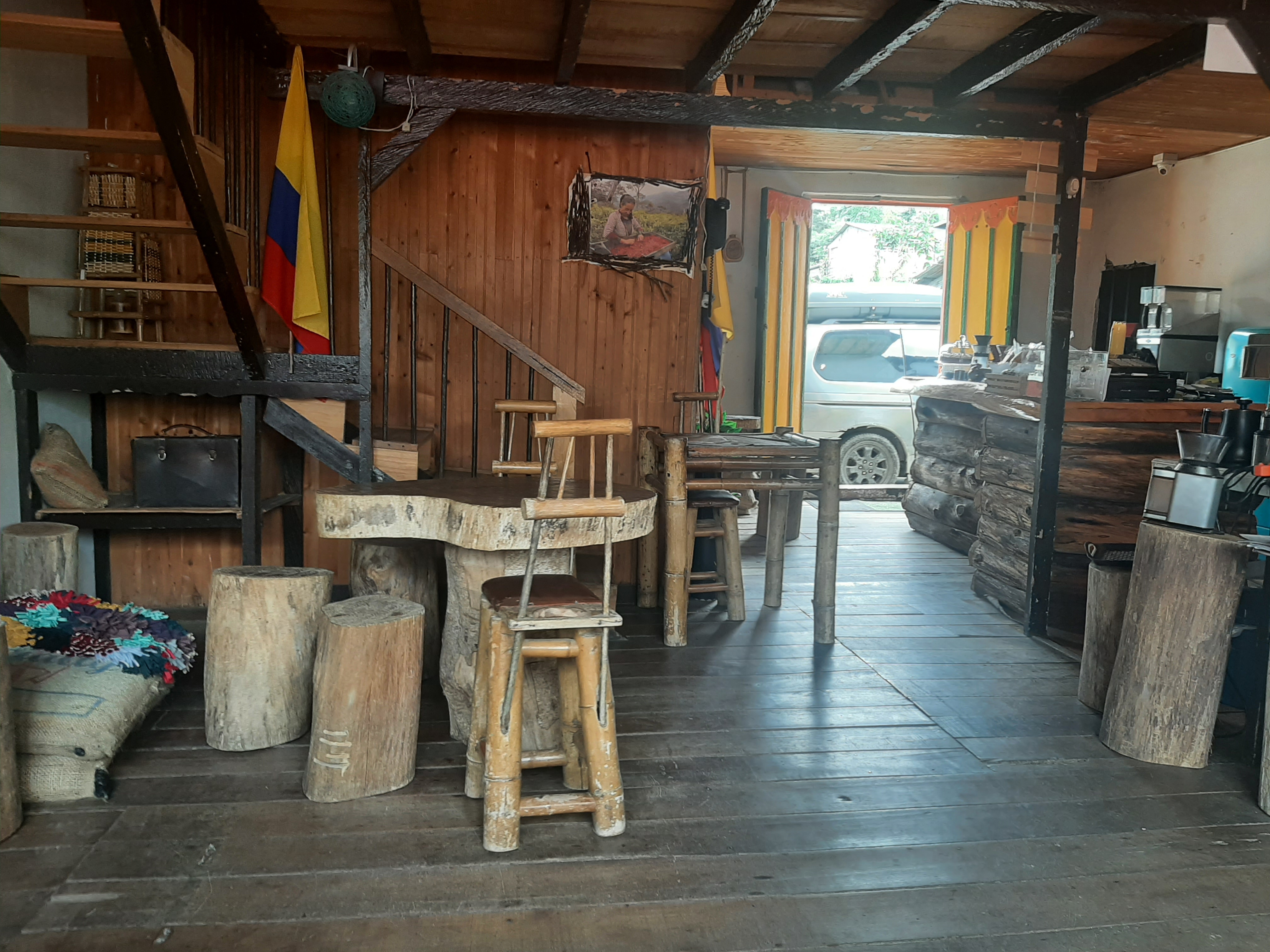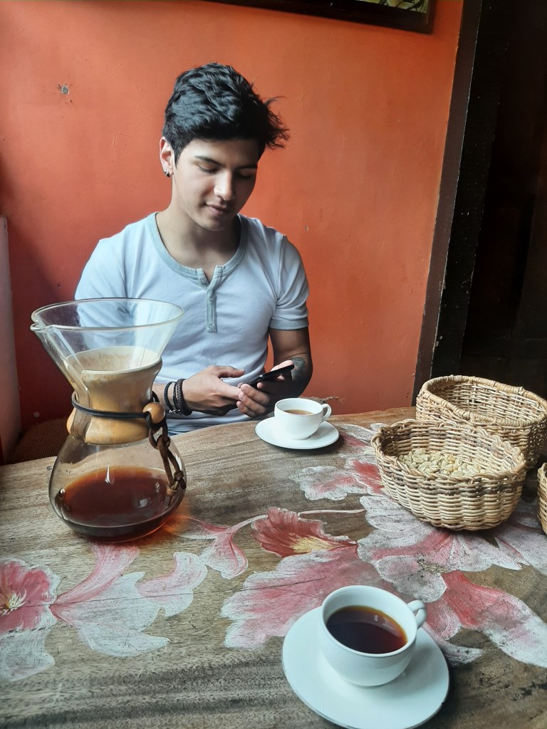 Der erste längere halt auf unserer Reise ist Pijao. Hier wohnt ein Teil von Leíders Familie und weil seine Eltern zufällig in der Stadt sind, lerne ich die beiden kurz kennen. Die Stadt kommt mir bekannt vor, da Teil des Unterrichts war, dass wir uns gegenseitig zeigten wo wir wohnen. Es ist spannend die Orte dann auch in echt mal zu sehen. Hier trinken wir einen traditionell zubereiteten Kaffee und als ich mit meinem Latte ankomme, möchte Leíder kurz nichts mehr mit mir zu tun haben. Wie ich nur Kaffee mit Milch bestellen könne fragt er mich entsetzt. Also lasse ich das und schließe mich dem puren Kaffee an.