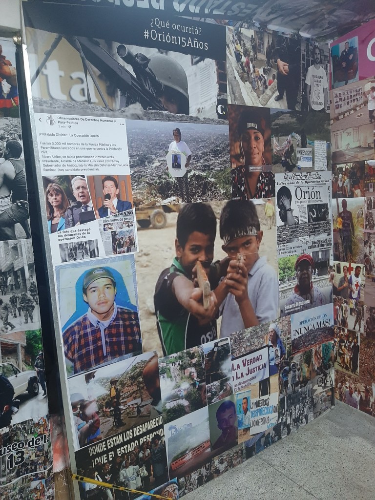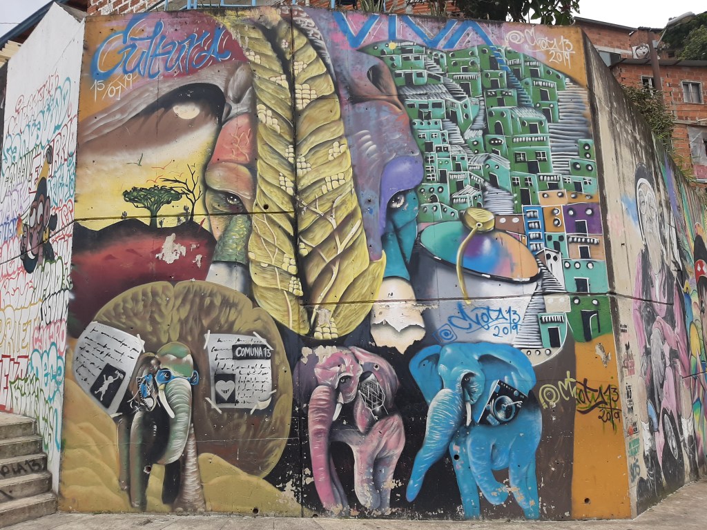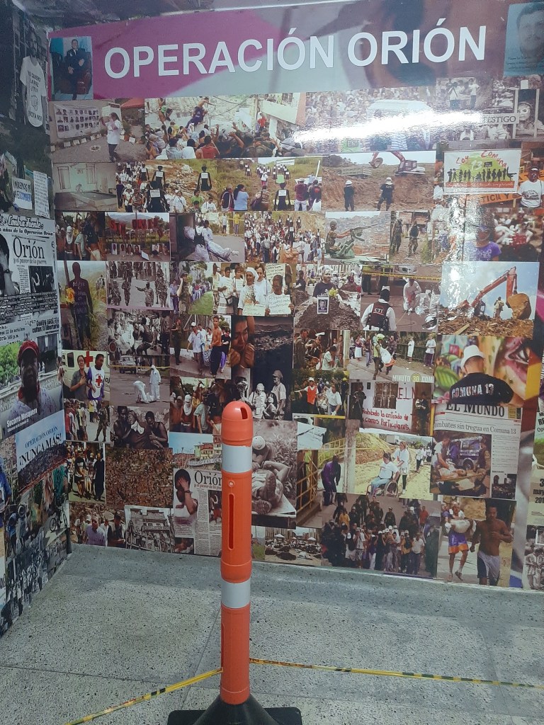 2003 dann wollte der kolumbianische Staat endgültig die Guerilla aus der Stadt entfernen und schickte in einer Reihe äußerst kontroverser Operationen das Militär abermals in die Comuna. Mit Anti-Panzer Munition wurde wahllos über mehrere Tage aus Hubschraubern und Anti Tank Panzern auf das Viertel geschossen. Wir reden hier von einem Stadtteil einer Millionenstadt, das mehrere Tage unter Beschuss stand. Katerin, Josés Frau erzählt mir später, wie sie in einem der benachbarten Viertel aufwuchs und wie man den Lärm über Tage in der ganzen Stadt hörte. Im Viertel selber kamen wahllos Bewohner durch die Operation ums Leben und die die es überlebten konnten teils tagelang ihre Häuser nicht verlassen. Nach mehreren, MEHREREN, solcher Operationen wurde das Viertel schließlich erobert.