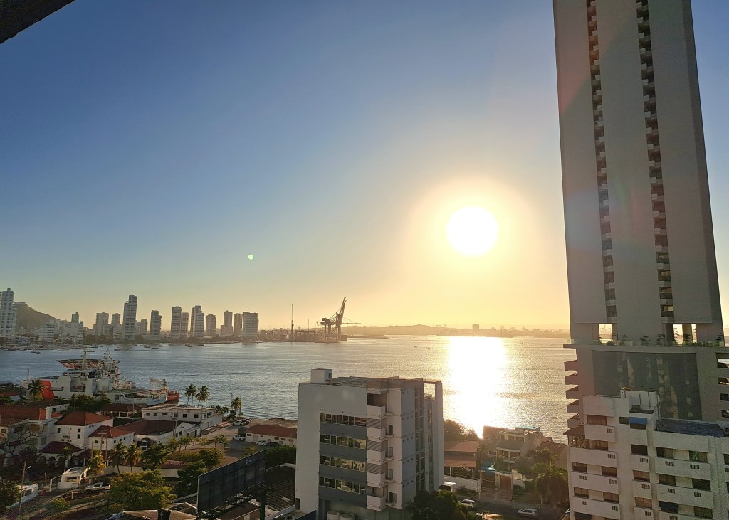 Über Bogotá fliegend, war unser nächstes Ziel Cartagena. Der arme Junge sollte etwas aus dem deutschen Frost aufgetaut werden und 32 Grad am karibischen Meer und Pool sind genau das Richtige dafür. Hier, am Plaza de la Trinidad, gibt es, nun durch mindestens zwei Leute bestätigt, den besten Burger der Welt. Ich stelle Stefan Jusue, meinen venezolanischen Bier-Ticker vor. Schon der vierte Kunde, dem ich ihn bringe, versorgt er uns stets mit kaltem Bier und beschwert sich irgendwie trotzdem, wenn ich nicht so viel kaufe/trinke, wie er das will, die kleine Raupe Nimmersatt. Am nächsten Abend fahren wir auf einer Dinner-Bootsfahrt durch die Bucht von Cartagena. Wir werden für ein Pärchen gehalten und uns wird der besonders romantische und abgelegene Bug des Schiffes angeboten. Wir haben keine Eile dieses Missverständnis aufzuklären und genießen die hervorragende Aussicht auf die Stadt.