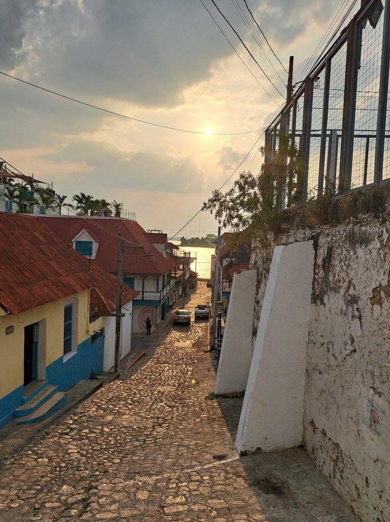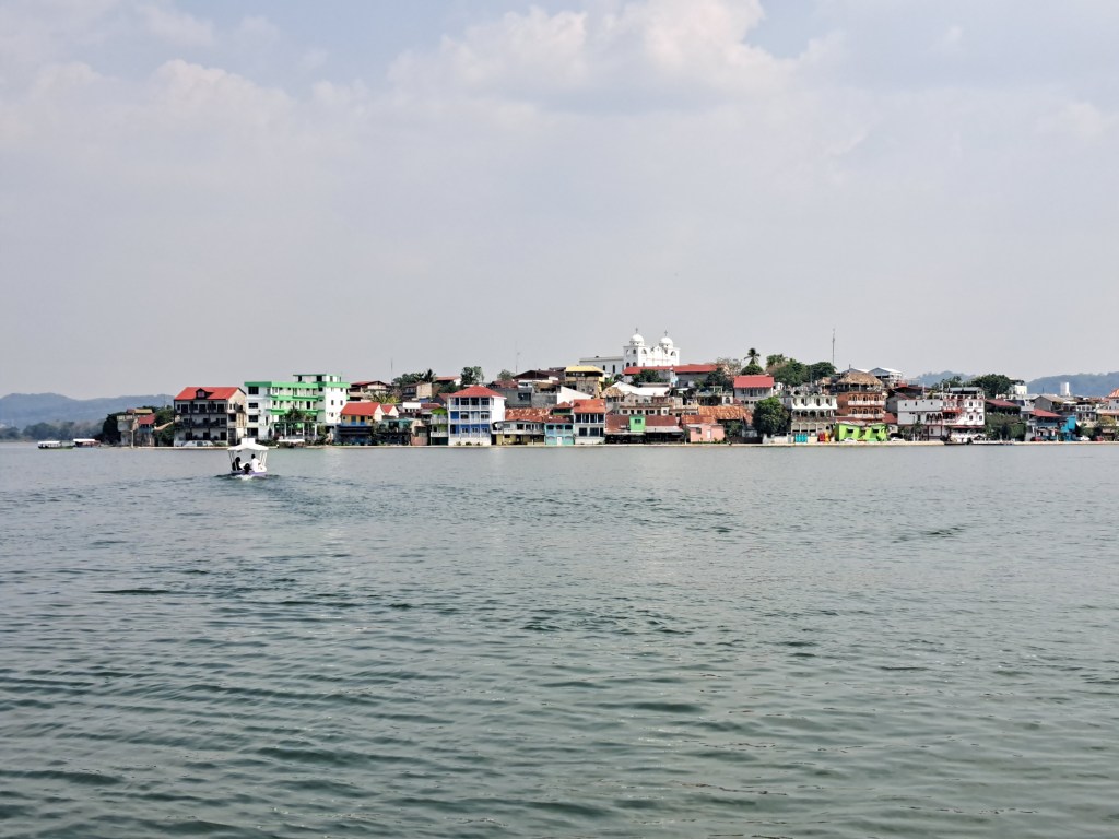 So verrückt es auch klingt, ein wenig kann man sich an diese Hitze gewöhnen. Auch wenn ich mich immer noch Frage, wie die Guatemalteken es schaffen bei diesem Wetter in langen Hosen unterwegs zu sein und körperlich zu arbeiten. Irgendwann aber schwitzt man einfach weniger und selbst in der Hochphase der Hitze stellt sich wieder so etwas wie Hunger ein. Wenn es sich dann Nachts auf 23-25°C abkühlt und ein leichter Wind geht, kann einem schon kalt werden und ich habe mich mehrfach erwischt, wie ich mir fast einen Pullover „wegen der Kälte“ übergezogen hätte. Als ich dann zwei Mal das Glück hatte aus der Touristen-Enklave der Isla ins „echte“ Flores auf einem Motorrad mitgenommen zu werden und der Fahrtwind mir Nachts um die schnittigen Flip-Flops und in die Shorts rein wehte, da fröstelte mir sogar und ich musste mich schütteln.