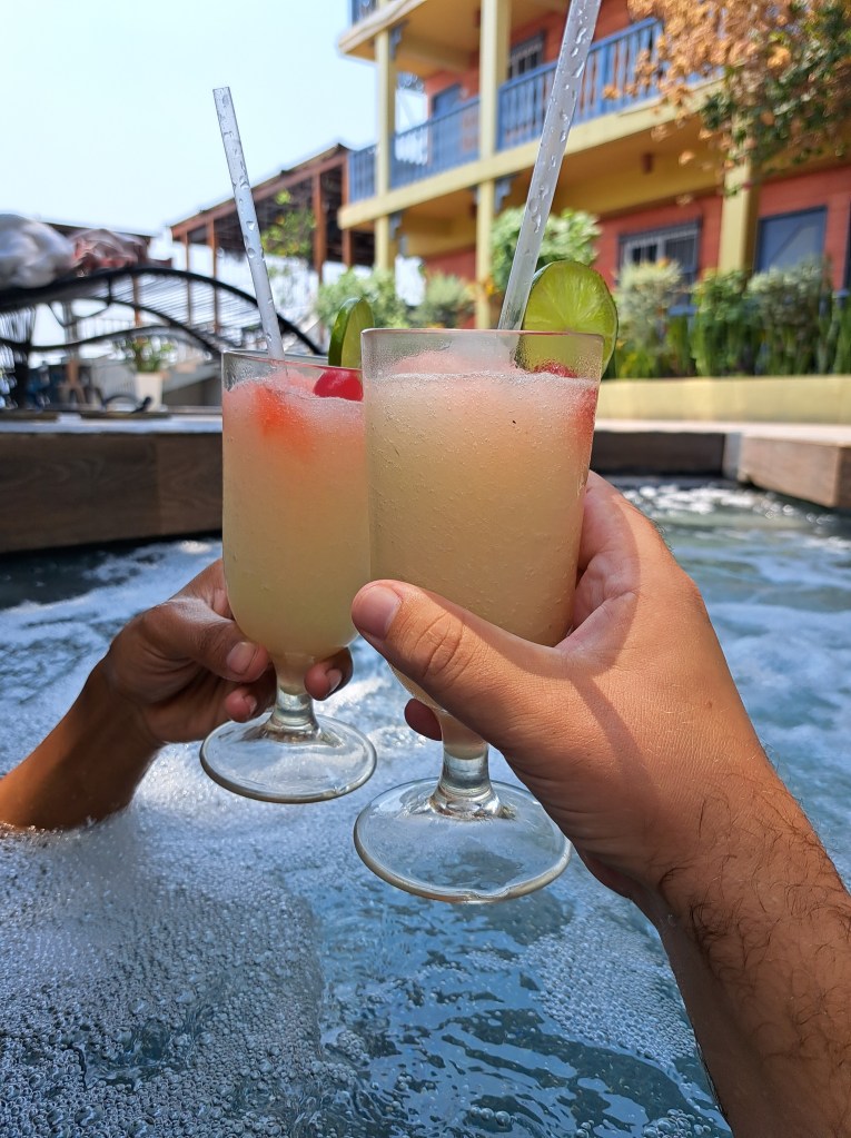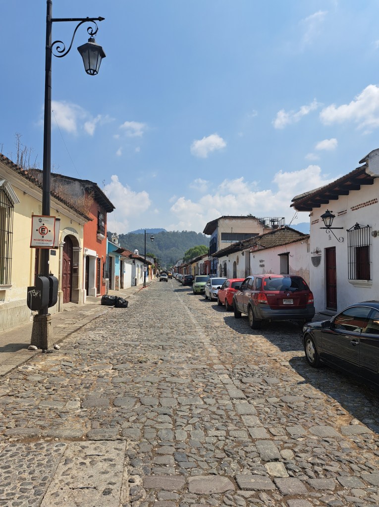 In Antigua laufe ich in der ersten Nacht Sergej über den Weg, mit dem ich gemeinsam in Guatemala angekommen bin. Ich hatte ihn schon gar nicht mehr auf dem Schirm, allerdings musste er leider am nächsten Morgen seinen Flug nehmen, sodass keine Zeit blieb sich kurz zu updaten. In Deutschland vielleicht. In der gleichen Nacht treffe ich einen Guatemalteken, dessen Namen ich bis zum letzten Tag nicht herausfinden sollte. Da es irgendwann etwas komisch wurde danach zu fragen, weil schon so viel Zeit vergangen war, ließ ich es einfach sein. Er zeigte mir seine Lieblingsbar und wo man am besten Karaoke singt. Wir gehen gemeinsam ins Museum und philosophieren über Christentum und wie es hiesige Kulturen zerstört hat. Was wohl geschehen wäre, wenn die Spanier nicht auf Raubzug gegangen wären, sondern ein friedlicher Austausch stattgefunden hätte. Das alles in einer Stadt, die in der Zeit stehen geblieben ist. Auch hier ist die Regensaison überfällig, doch auch hier bleibt es wegen des Klimawandels trocken und angenehm warm.