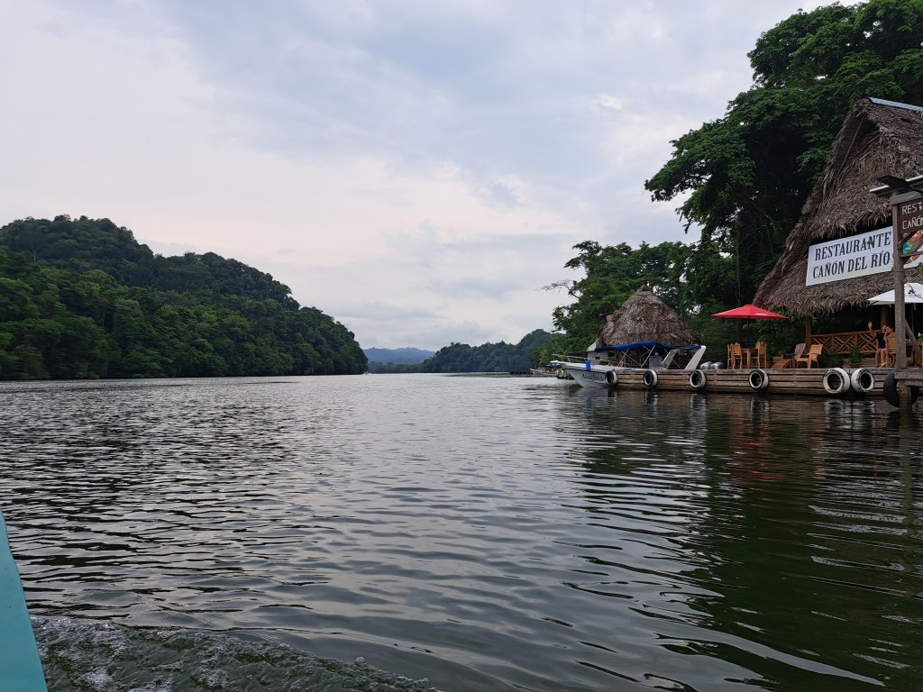 Ich wurde sicher und unfalllos vor meinem Hotel abgesetzt. Wir verabschiedeten uns nach zwei Wochen zum letzten Mal und am nächsten Morgen ging es, statt mit dem Moto, in einem Bus mit kaputter Klimaanlage bei 35 Grad nach Rio Dulce. Die kaputte Klimaanlage wird zum Running Gag hier, da die Firmen ihre Shuttle stets als mit Klimaanlage bewerben und sich dann stets bei Fahrtantritt herausstellt, das just heute genau dieses Feature nicht funktioniert. Aber man habe ja Fenster, die man aufmachen könnte.