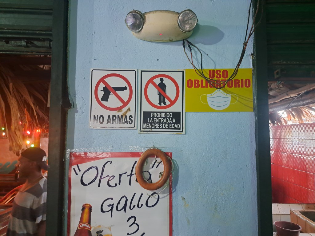 Eine Diskothek in Latinoamerica ist ein ganzheitlich anderes Erlebnis als in Deutschland. Es gibt das Vorurteil, dass alle Latinos gut tanzen könnten, und natürlich bedingt das eine nicht das andere. Andererseits unterteilen alle meine Latinofreunde in Deutschland, auf ihre Tanzfähigkeiten angesprochen in „für deutsche Verhältnisse“ und „für Latino-Verhältnisse“, zum Beispiel: „Also für Latinoverhältnisse schlecht, aber für deutsche Verhältnisse gut.“. Nun war ich in Flores mit jemandem unterwegs, der von sich behauptete sehr gut tanzen zu können und seine Freunde, die sagten das von sich und ihm auch. So wurden die Tages-Schlappen gegen Party-Crocs getauscht und es ging los zum Tanzen.