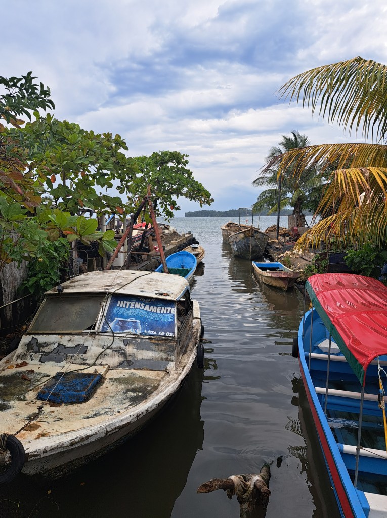 In Rio Dulce ist es nicht ganz so heiß wie in Flores und bei einem Tagesausflug per Boot nach Livingston fängt es sogar an zu regnen. Auf dem Tagesausflug lerne ich einen Malaysier kennen, mit dem ich den Tag dort verbringe. Wir haben uns beide nicht informiert was es hier genau zu sehen oder tun gibt. Und so steigen wir in ein Tuk-Tuk und lassen uns eine Tour geben. Als wir nach Essen suchen, dreht er sich zu mir und fragt mich „Wo ich dich jetzt so kenne… Was ist los mit den Weißen, dass sie irgendwann einfach ihre Arbeit hinschmeißen und auf Reisen gehen? Warum macht ihr das?“