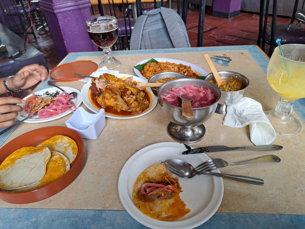 In Mexiko-Stadt auf jeden Fall fühle ich mich innerhalb der Touristen Viertel sicher genug und auf anraten von Angel fahre ich auch viel mit der Metro. Das scheint allerdings eher nicht so das Touristen Ding zu sein. In knapp einer Woche sehe ich in der Metro zwei andere offensichtliche Ausländer. Ansonsten ein sehr mexikanisches und hervorragend funktionierendes Erlebnis. Klar, Hände auf die Hosentaschen und Handy bei offenen Türen nicht in deren Nähe nutzen, wegen der Diebe. Aber das gilt fast überall und ich nichts typisches für die Metro in Mexiko.