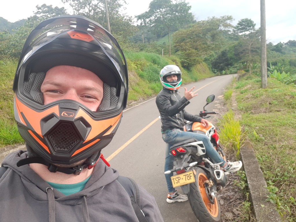Am nächsten Morgen soll es losgehen zu einem Ort, der mir unisono von jedem einzelnen Kolumbianer empfohlen wurde, den ich kennengelernt habe: Wir fahren ins Valle del Cocora. Leíder lebt sein Latino dasein voll aus und aus 8:00 Uhr wird 9:30 Uhr. Ich hingegen liege vom ungewohnten festhalten am Motorrad mit Muskelkater im Bett und habe nichts gegen einen späteren Start.
