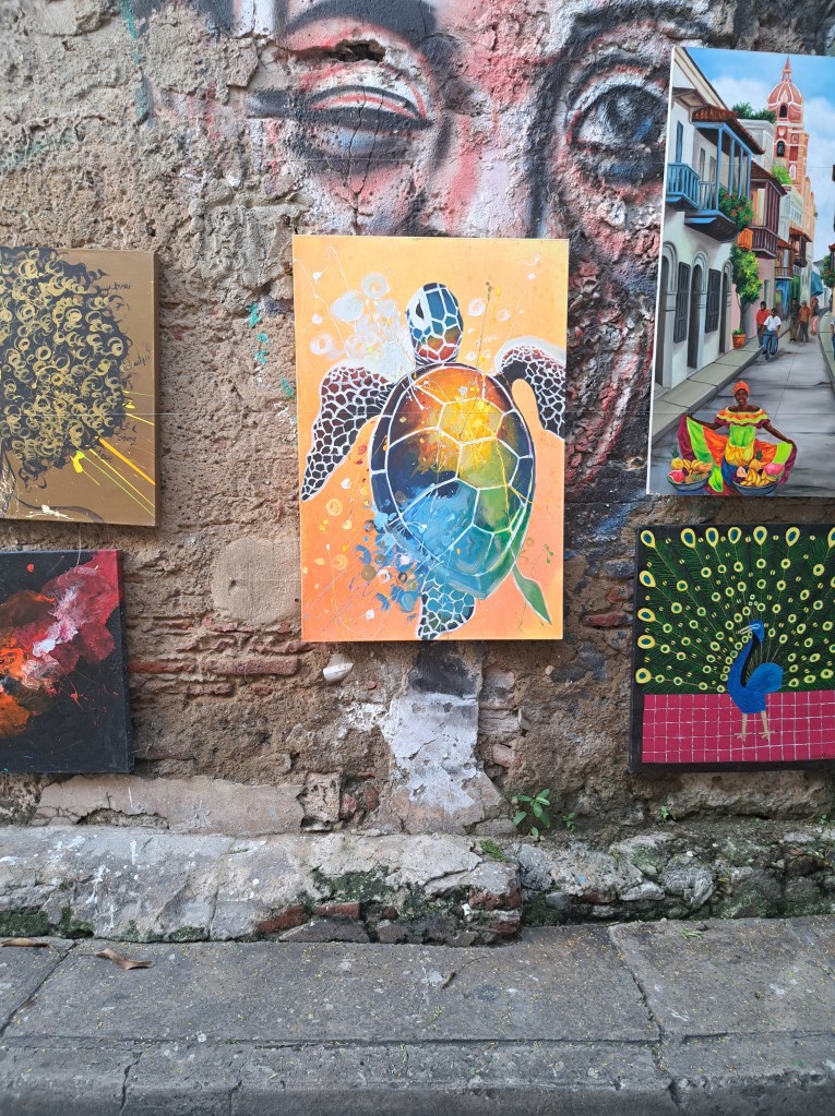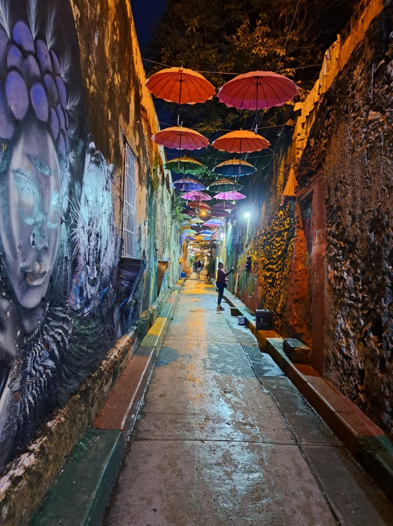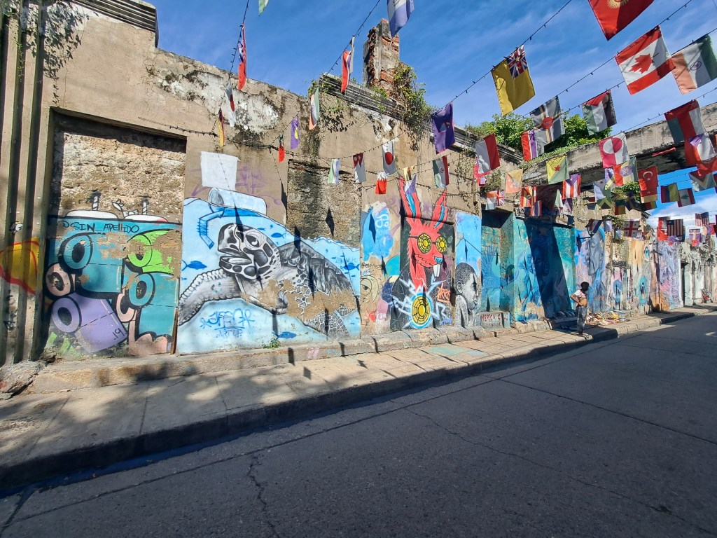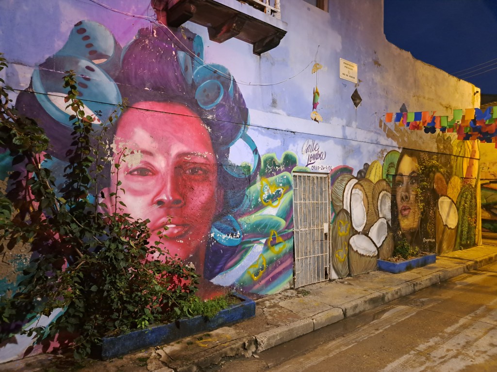Am Abend bin ich für eine Free Walking Tour der Graffitis in Getsemanì eingetragen. Diesmal auf Englisch. Ganz zufrieden bin ich damit nicht, aber wegen des Unabhängigkeitstages Cartagenas und der damit verbundenen Feierlichkeiten war nichts mehr auf Spanisch zu bekommen. Nun muss man dazu wissen, dass es bei diesen Touren einen kulturen Unterschied gibt, der dem Zielpublikum geschuldet ist. Spanisch richtet sich an Kolumbianer oder spanischsprachige Ausländer. Englische Touren, vor allem hierzulande, richten sich primär an US Amerikaner. Da es bei weitem die größte Zielgruppe ist, sicherlich ökonomisch sinnvoll, als Teilnehmer aber mehr zum fremdschämen. Alles und wirklich alles wird heruntergedummt, überemotional in Szene gesetzt und dann mit einem persönlichen Bezug versehen, damit sich der dumme Durchschnittsami auch möglichst wenig mit seiner schlechten Allgemeinbildung auseinandersetzen muss. Stattdessen darf er sich dann in oberflächlichen Platitüden mit dem Host ergehen.